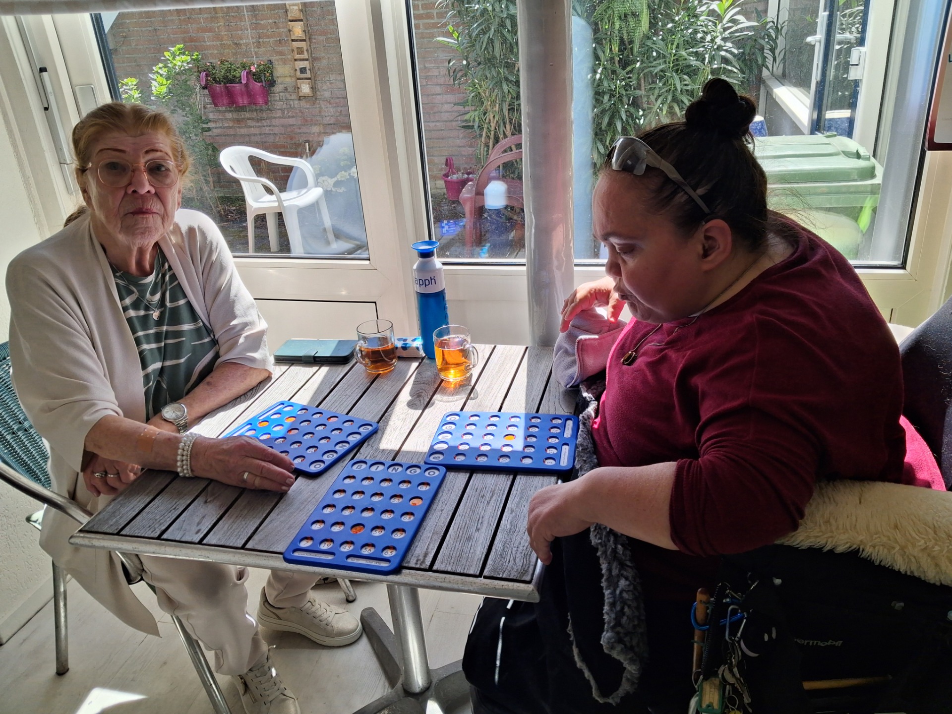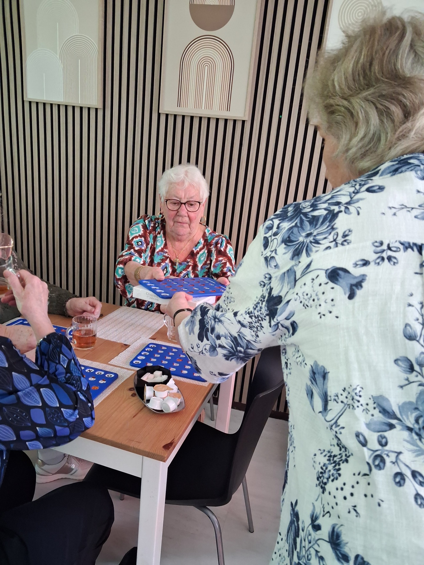 Er waren mooie prijzen, voor ieder wat wils: onder andere een huidverzorgingssetje, doos luxe bonbons, boodschappenbonnen, vouchers (om de volgende reguliere bingo gratis mee te doen), een solar buiten lamp etc. Na de gewone bingo rondes was er nog een superronde met als prijs een zeer goed gevulde boodschappentas. Van vele kanten hoorden we dat dit initiatief zeker voor herhaling vatbaar is omdat je vaak op zondag niets te doen hebt. En iedereen was ook gecharmeerd van de traktaties. Na de bingo bleven er nog wat dames hangen om na te kletsen en de gezellige uurtjes nog wat langer uit te smeren.