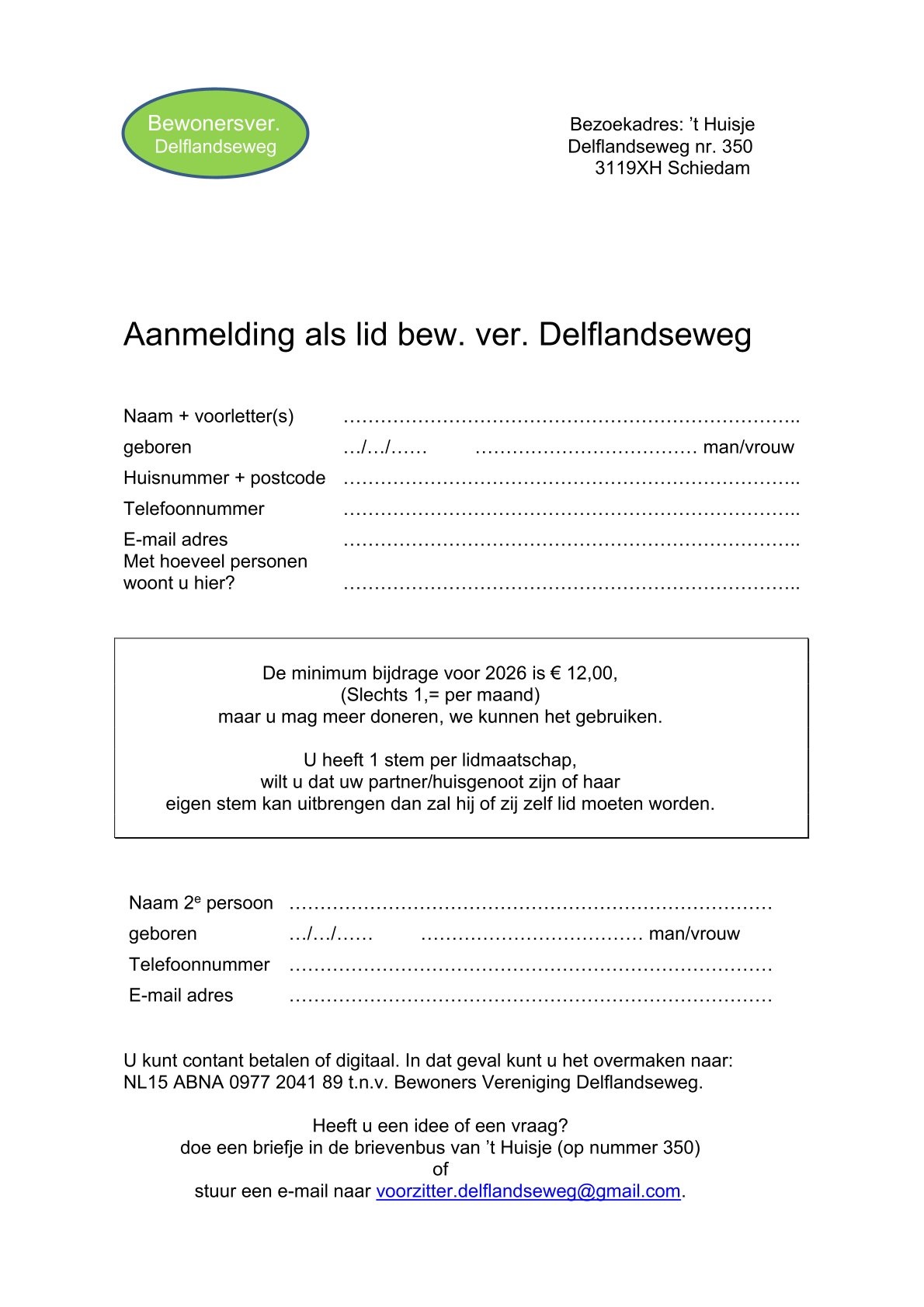 Download het formulier en vul het in.Doe het in de brievenbus van 't huisje.Maak het lidmaatschap over per bank of geef het af in 't Huisje.